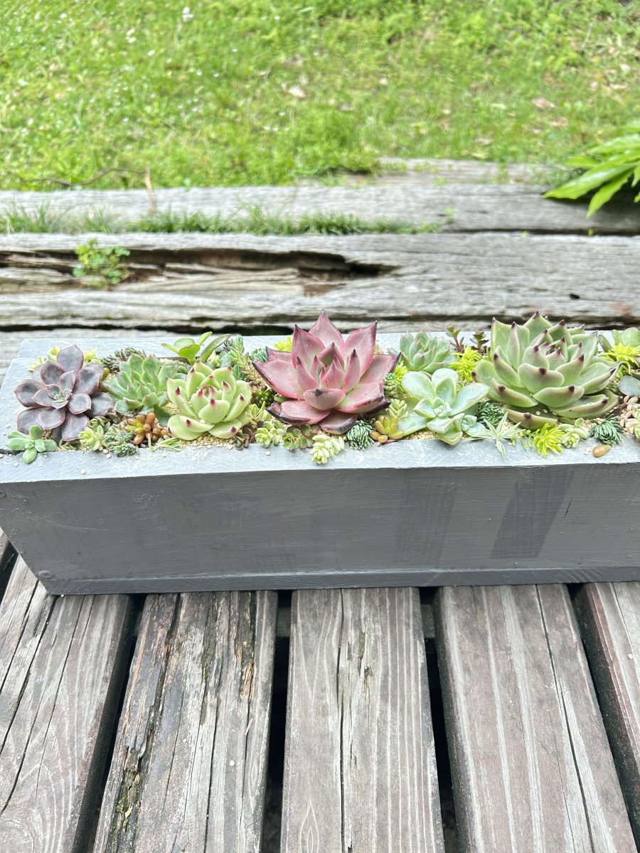 自分で作った木箱に多肉植物を寄せ植えしてみました♪